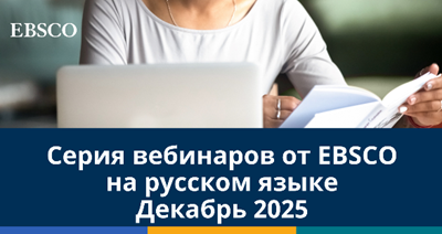 26 желтоқсан, сағат 10.00 (Москва уақыты) – EBSCO Experience Manager және EBSCOadmin – EBSCO ресурстарын басқаруға арналған платформаларға шолу (электрондық ресурстармен жұмысқа жауапты кітапханашылар үшін).